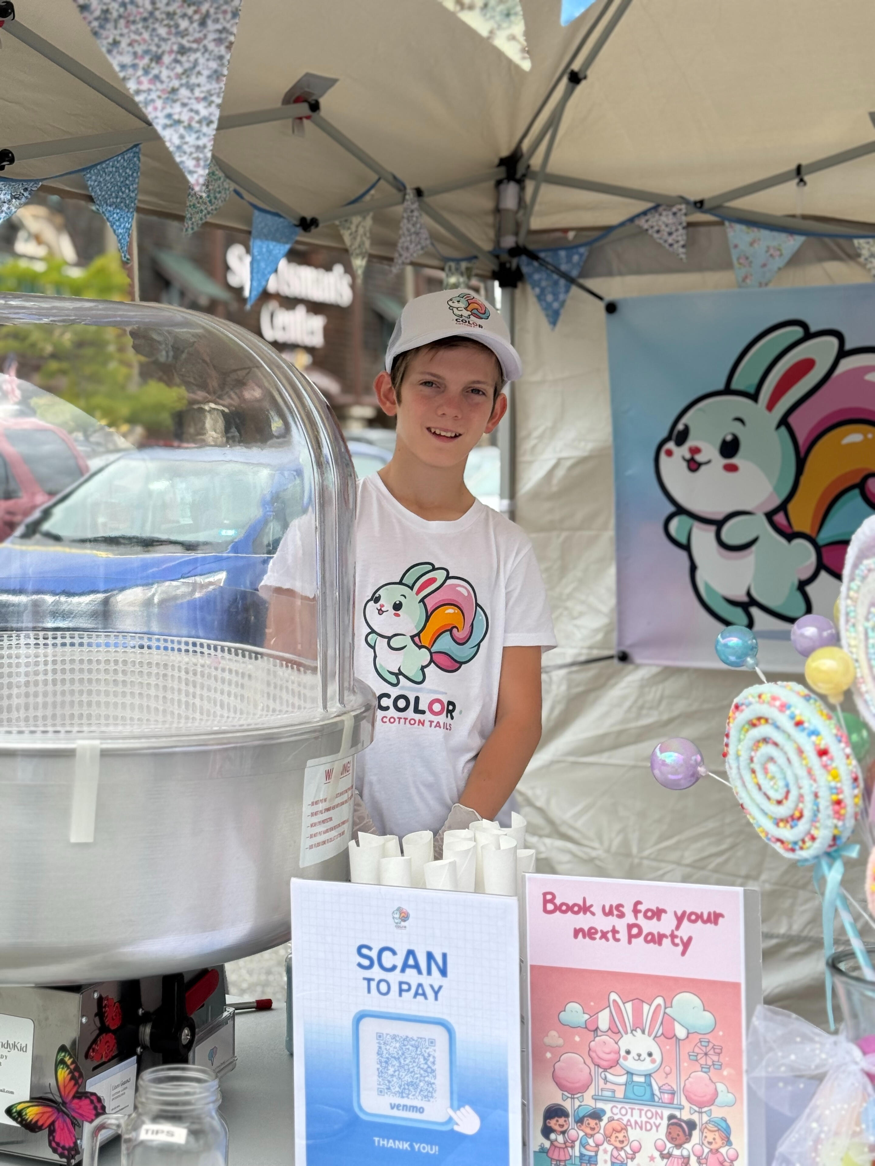 Hi, Iβm Liam, a 13-year-old entrepreneur behind Color Cotton Tails, bringing fresh cotton candy fun and bright smiles to kidsβ parties and celebrations. π